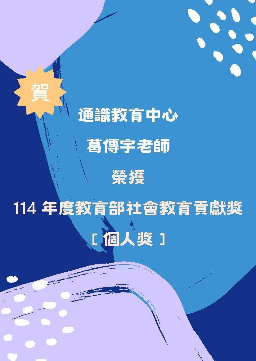 榮獲113學年度第2學期 優良教師(教學用心經學生反應評量成績優良)!